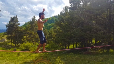 El Slackline es un deporte en el que se trabaja todo el cuerpo, incluida la mente, basado en el equilibrio y que consiste en cruzar una cinta plana, con más o menos tensión y que está sujeta en dos puntos fijos, generalmente árboles. La cinta plana puede ser de diferentes grosores, los más comunes son 2.5cm y 5cm, y puede estar puesta a diferente distancia y diferente altura, eso dependerá de nuestro nivel de experiencia. El material también es importante, ya que nos da mayor dinamismo o estabilidad según lo que queramos realizar, normalmente están fabricadas en poliéster o nylon. El equipo básico de iniciación consta de una cinta plana de 20m y 5cm de anchura, una carraca para el tensado y dos protectores para los árboles.